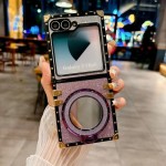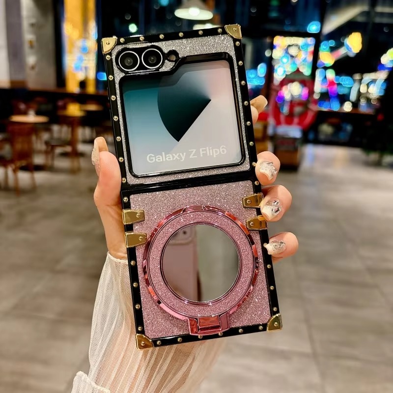 Luxury Glitter Diamond Mirror Bracket Case for Samsung Z Flip 6 5 4 3 Flip6 Flip5 Make up Stand Holder Bling Rhinestone Cover